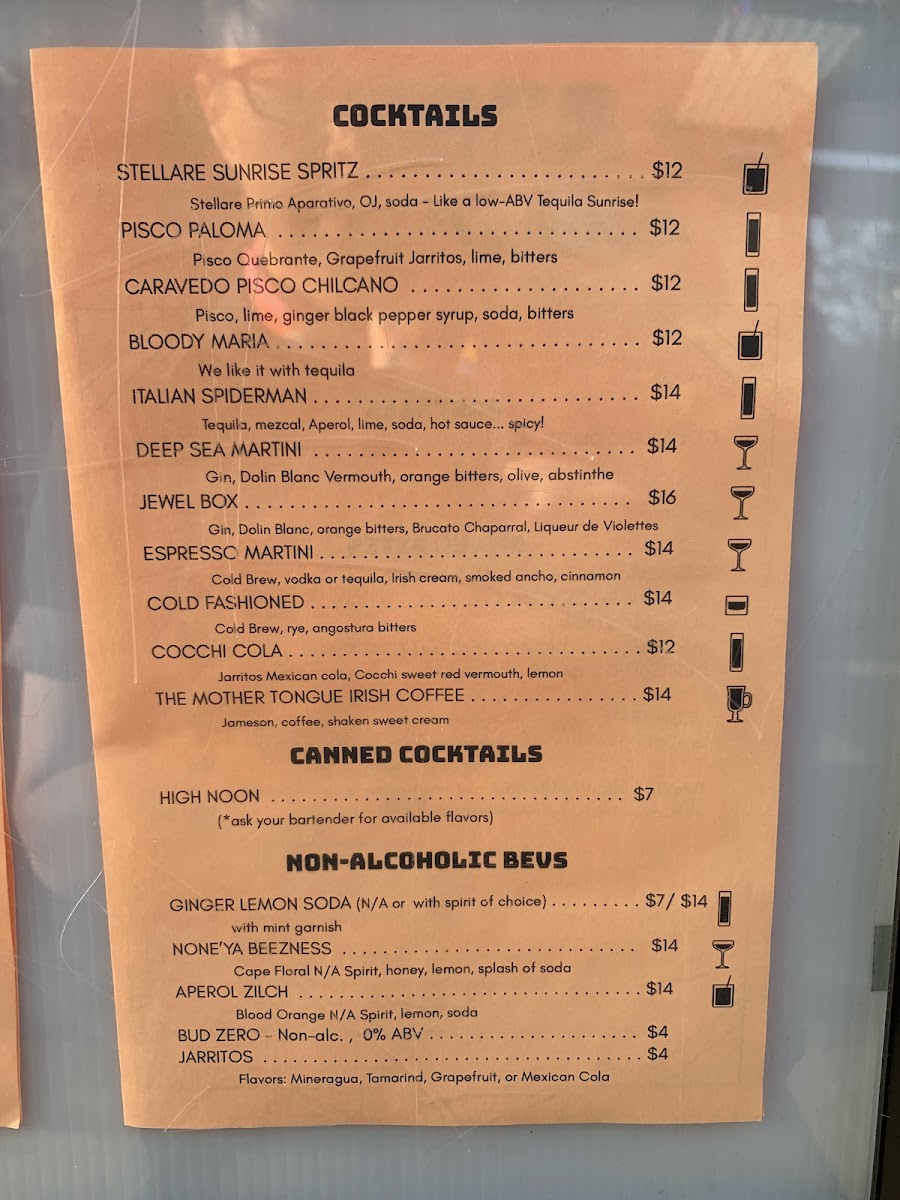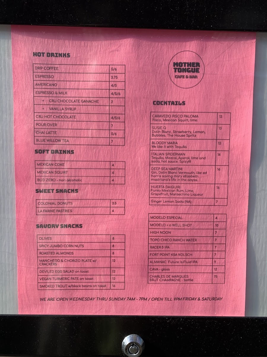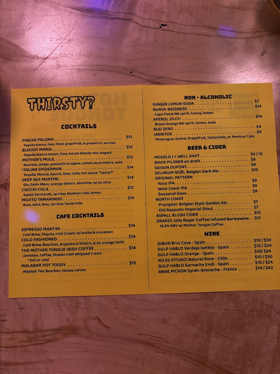 Mother Tongue Cafe & Bar Menu